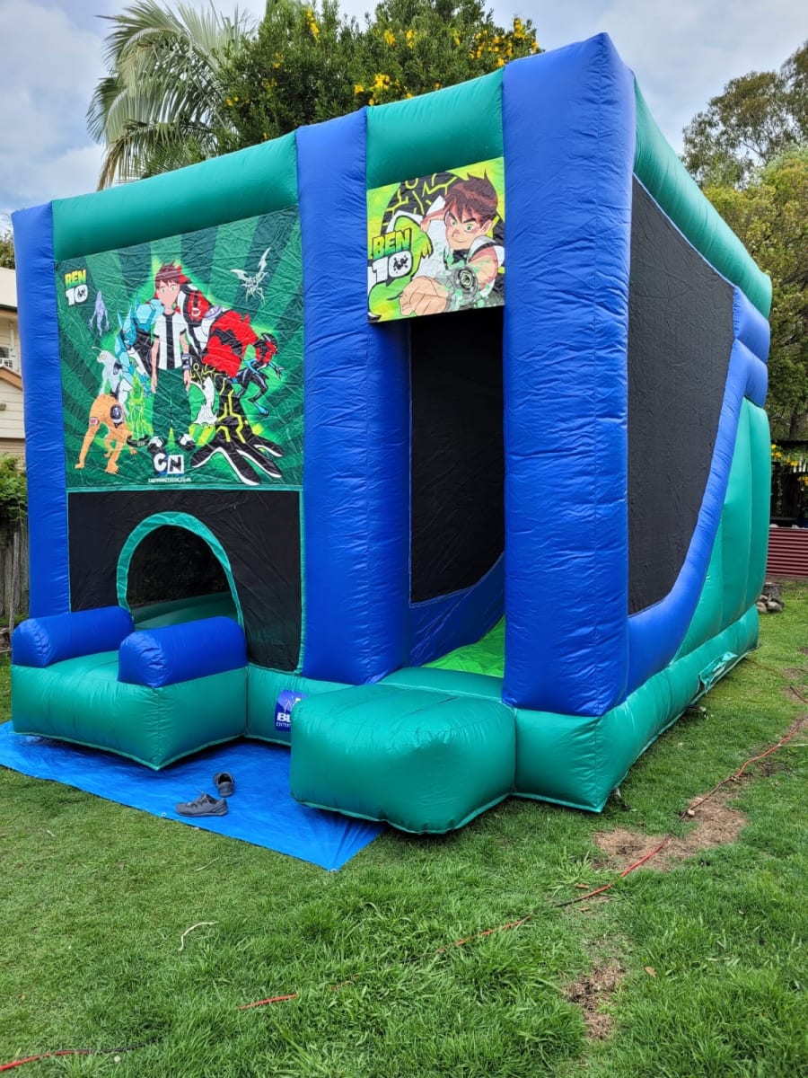 It's hero time! A thrilling adventure awaits for young fans of the Omnitrix in this Ben 10 Jumping Castle! Get ready to bounce, slide, and transform into aliens just like Ben Tennyson himself. Let your imagination soar and let the fun begin when you get this jumping castle hire Brisbane inflatable! Remember, the power to save the world lies within each of us. So, put on your Omnitrix and bounce into action. The universe is counting on you!