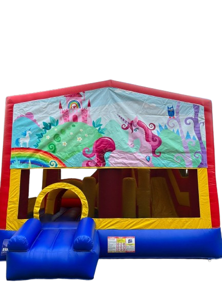 Transform any event into a magical wonderland with our 5x5 Unicorn Obstacle Slide. Perfect for birthdays, community events, or any special occasion, this enchanting inflatable offers hours of delightful fun for kids of all ages. With its vibrant unicorn theme, exciting obstacles, and fast slide, it's the ultimate attraction that guarantees smiles and laughter.