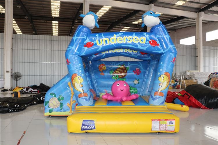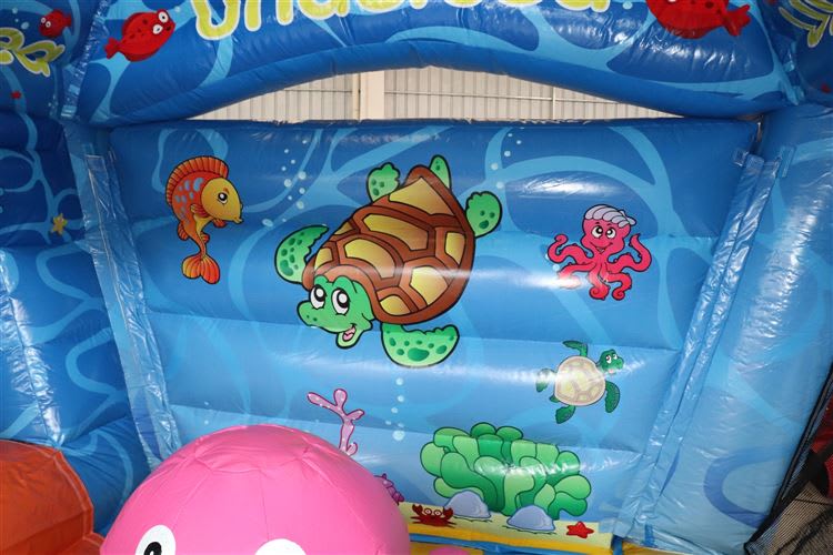π 6 & 8 hour hire times π A slide off the side of the jumping castle π Under water theme π Cool under water obstacles π Small in size to fit in more places π A big open front to keep an eye on all bouncers π A shade cover to allow protection from the sun or from light rain