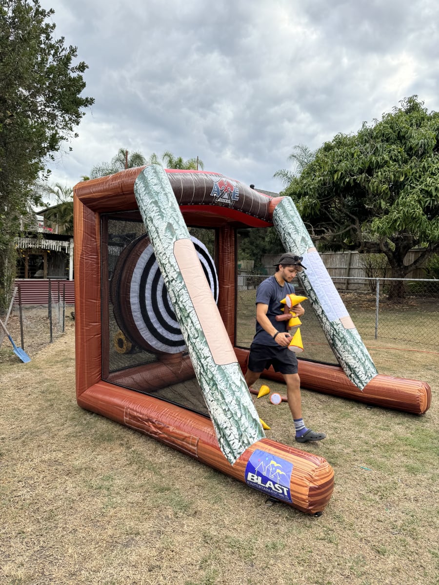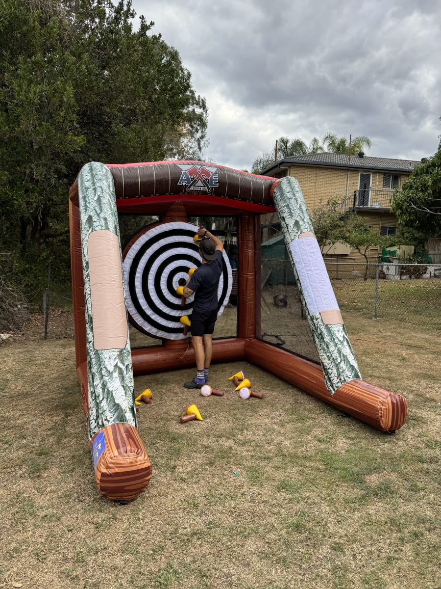 Contact us today for the best inflatable axe throwing game experience in Brisbane! π