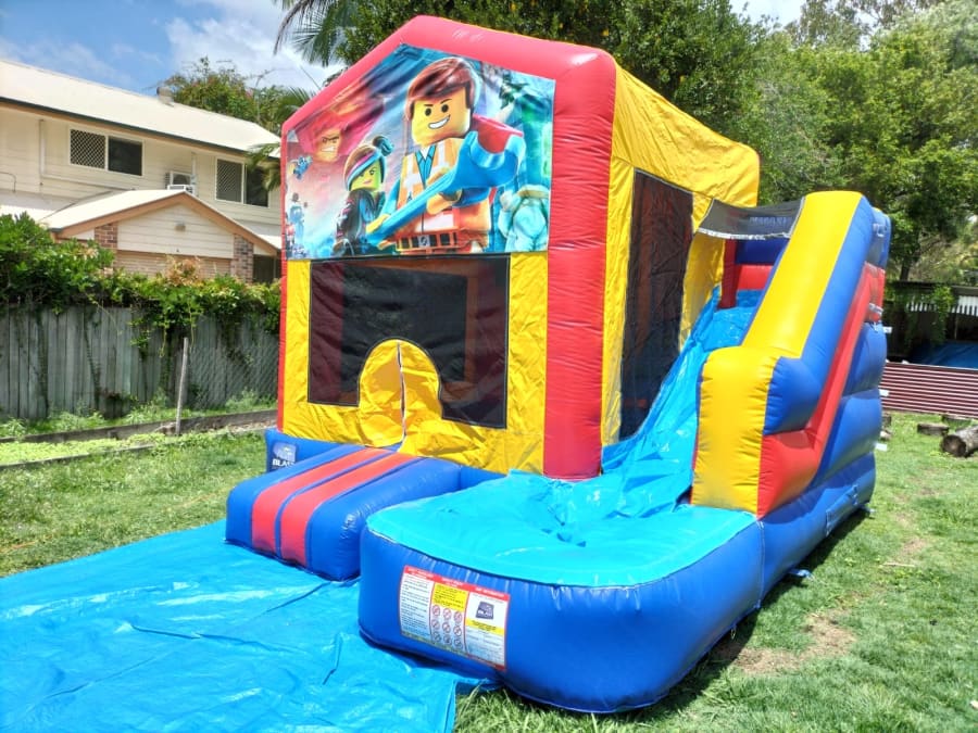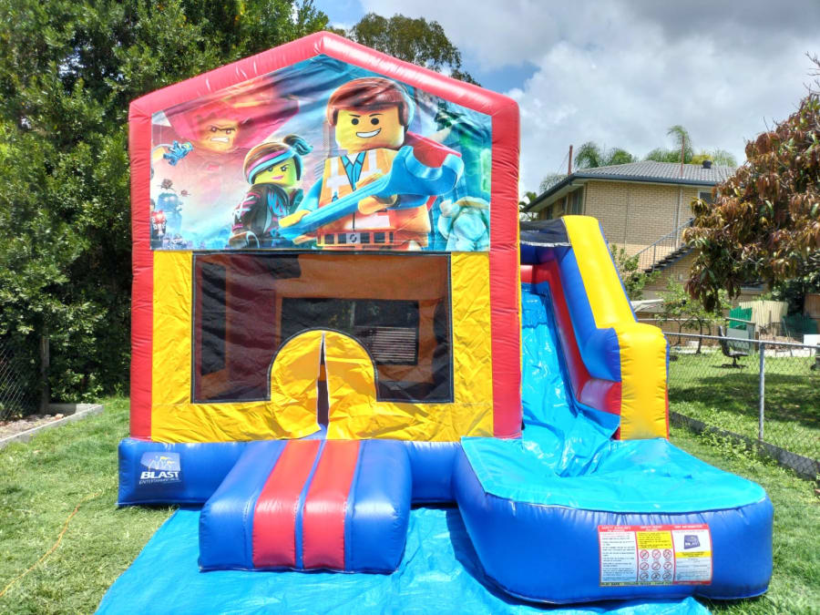 This 4x5m Lego Slide Jumping Castle is very popular at kids parties and fun occasions of any kind. With reinforced seams and a large bouncing area it's suitable for up to 12 kids at a time. The front features and entrance to climb through and a slide on the other side to go slipping down.