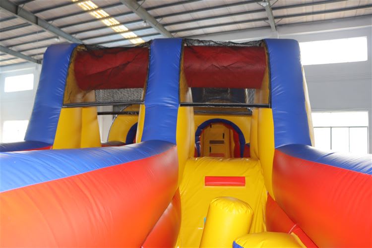 Prepare for an adrenaline-pumping experience with this double lane inflatable obstacle course. Featuring a gauntlet of obstacles to dodge through, two challenging walls to climb over, a thrilling corridor to sprint down, and a super slide to zoom down, the 50FT Dual Lane Obstacle Extreme will keep your guests entertained for hours on end! π°πβοΈπβοΈ