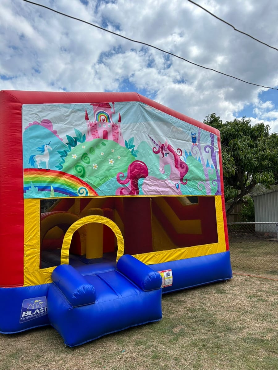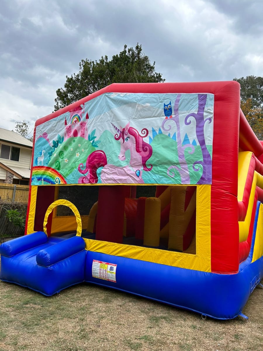 Don't wait! Experience the ultimate in fun and fantasy with our jumping castle hire Brisbane service. Contact us now to reserve the 5x5 Unicorn Obstacle Slide for your next event! π