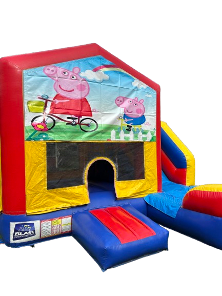 Looking to add a splash of excitement to your child's birthday party or family gathering? Our 4x5 Peppa Pig Themed Jumping Castle is the perfect solution! Featuring a vibrant design inspired by everyone's favorite cheeky little pig, this inflatable castle is sure to delight young fans and their friends. Complete with a slide for extra thrills, it's designed to keep kids entertained for hours on end.