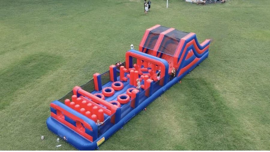 Get ready to elevate your event with our Adrenaline Rush Assault Course, the highlight of any gathering! This massive dual-lane obstacle course offers an exhilarating experience like no other. Packed with various obstacles and slides, it's perfect for thrill-seekers of all ages. Whether you're planning a birthday party, corporate event, or community fair, this course guarantees hours of fun and excitement. π