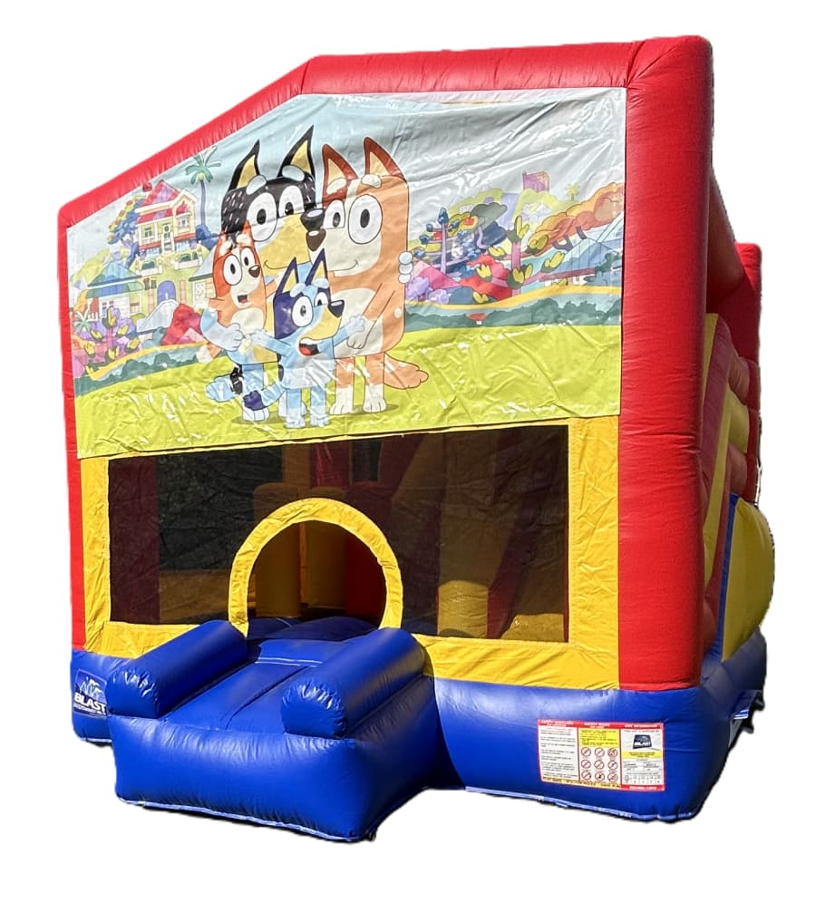 Looking to add excitement and joy to your child's birthday party or community event? Discover the ultimate fun experience with Jumping Castle Hire 4x4 Bluey Obstacle Slide in Brisbane, North Brisbane, Ipswich, Logan, Caboolture! This vibrant 4x4m jumping castle is inspired by everyone's favourite Bluey character and is perfect for kids who love to bounce, climb, and slide.