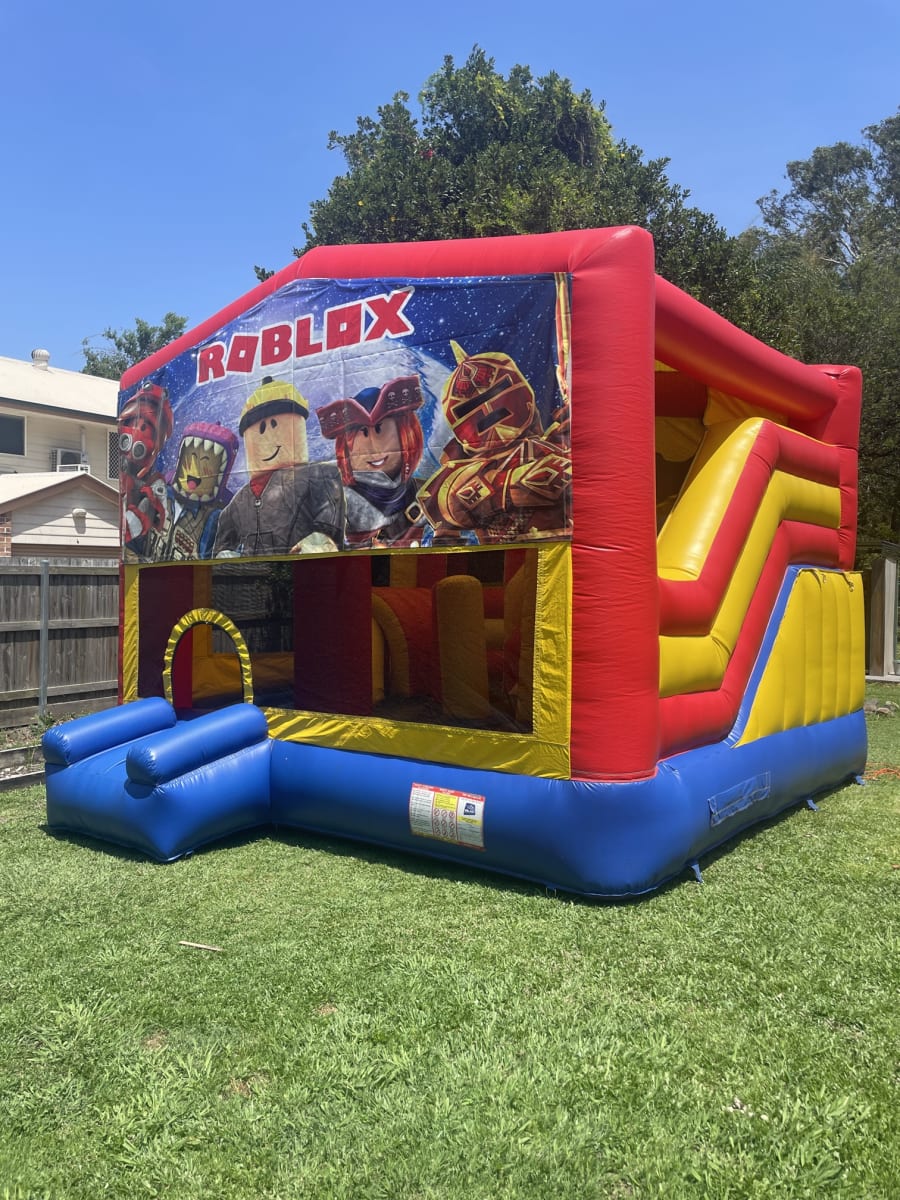 Jumping Castle Hire Roblox 5x5 Obstacle Slide in Brisbane, Ipswich delivers action-packed fun for kids and families. This 5x5m obstacle jumping castle with a slide combines bouncing, climbing and sliding in one compact unit. Perfect for parties, school events and weekend backyard fun. Book fast to secure your date. π