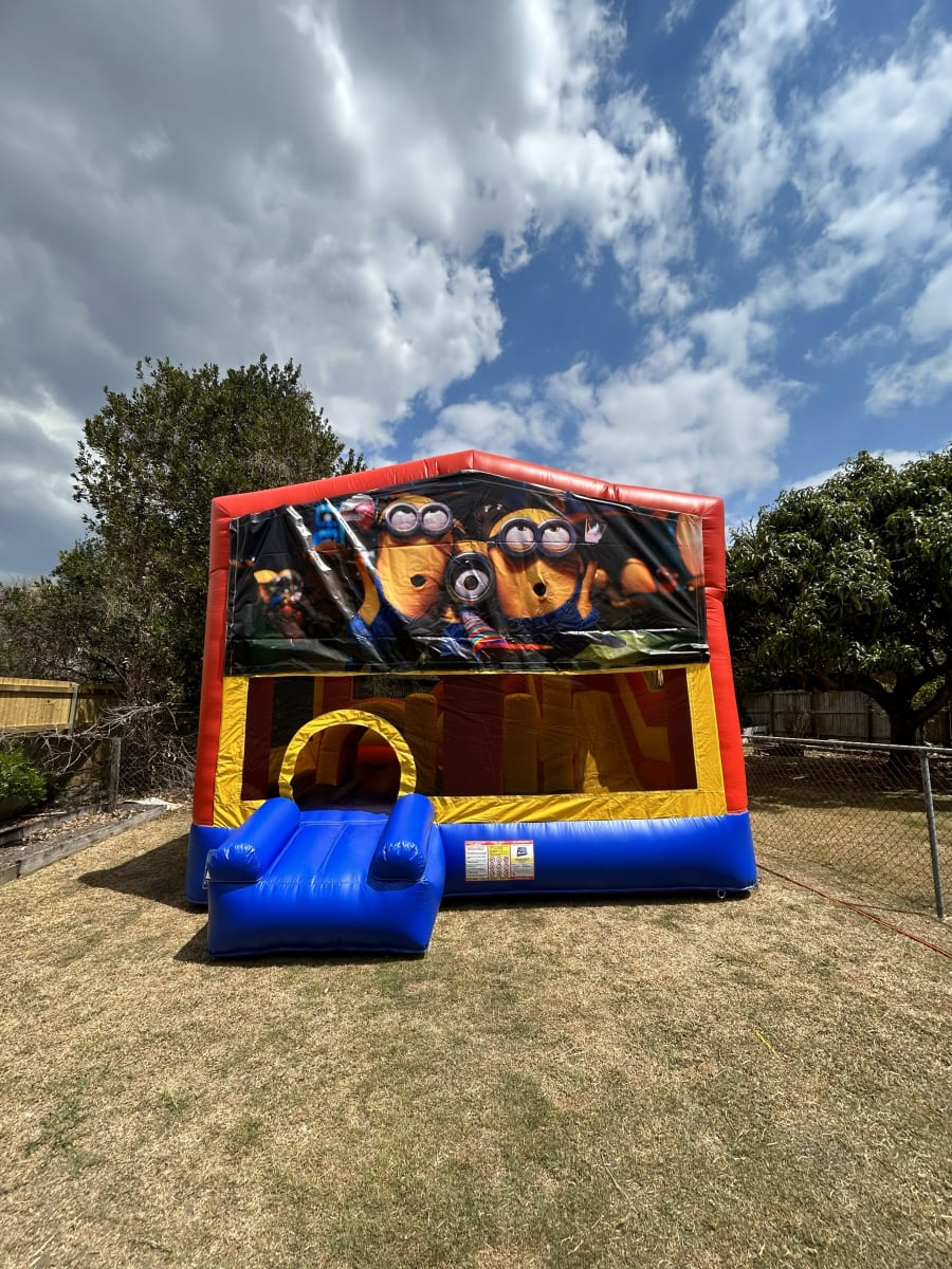 Bring a burst of fun to your next event with the Minions 5x5 Obstacle Slide. Perfect for kids' parties, community events, and family days. This themed jumping castle combines a bouncy area, slide, obstacles, and a basketball hoop. It also includes a rain and shade cover for all-weather comfort. Book reliable Jumping Castle Hire Brisbane and make your party unforgettable. π°