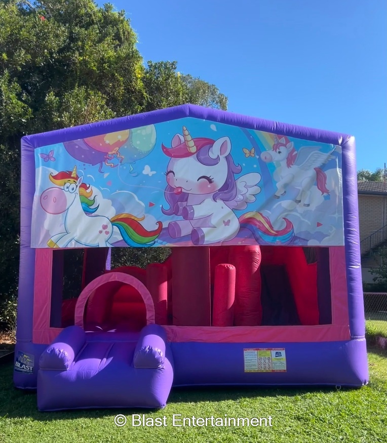 Don't wait! Experience the ultimate in fun and fantasy with our jumping castle hire Brisbane service. Contact us now to reserve the 5x5 Unicorn Obstacle Slide for your next event! π