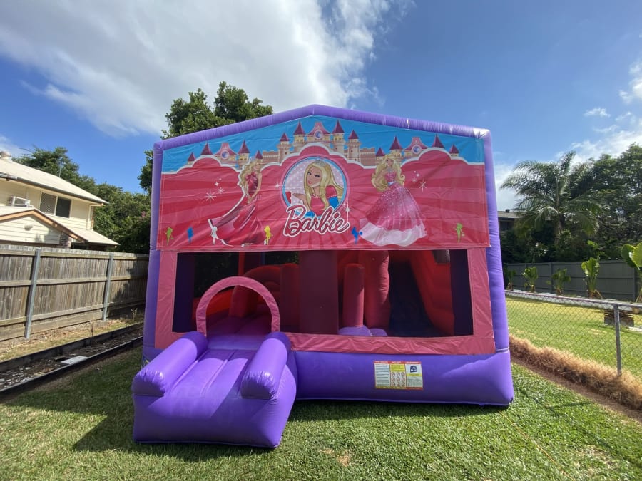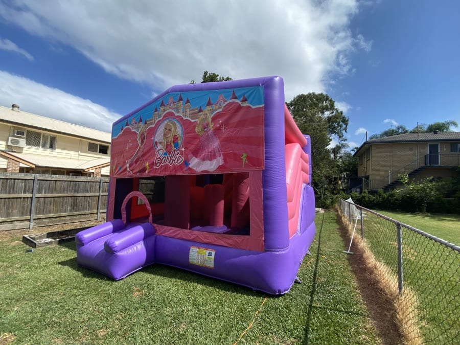 Bright. Fun. Pink. The 5x5 Pink Barbie Obstacle Slide delivers big smiles for little guests. This themed jumping castle features a large slide, roomy bouncing area, interactive obstacles and a basketball hoop. Perfect for birthday parties, community events and backyard fun in Brisbane. ππ