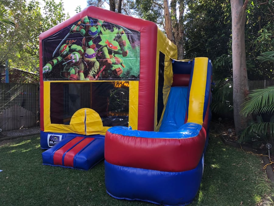 Turtle power, activate! Cowabunga! Get ready to join the Teenage Mutant Ninja Turtles on an epic adventure with the Ninja Turtle Themed Jumping Castle with Slide. Cowabunga dudes and dudettes! Grab your nunchakus, put on your mask, and prepare to become a true hero in this jumping castle hire Brisbane. It's time to bounce, slide, and unleash your inner hero with your favorite pizza-loving team.