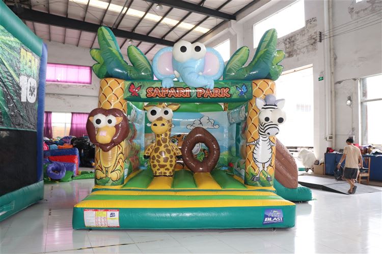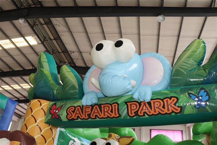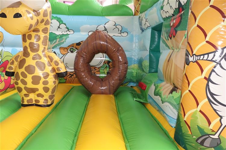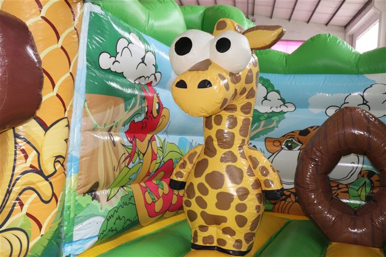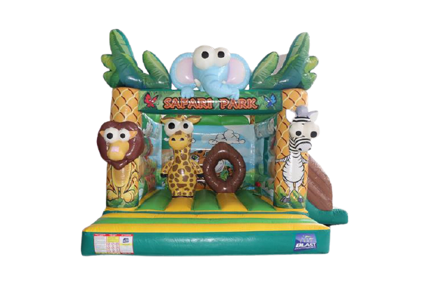 The 5x5 Safari Park slide & obstacle jumping is perfect for backyard safari party fun. It includes a ferocious lion & zebra opening, jumping area with a giraffe obstacle and a crazy Elephant at the top.