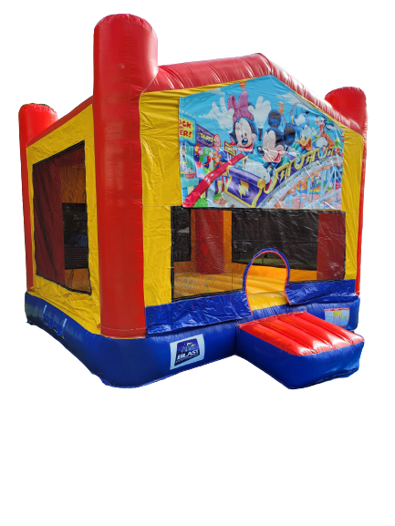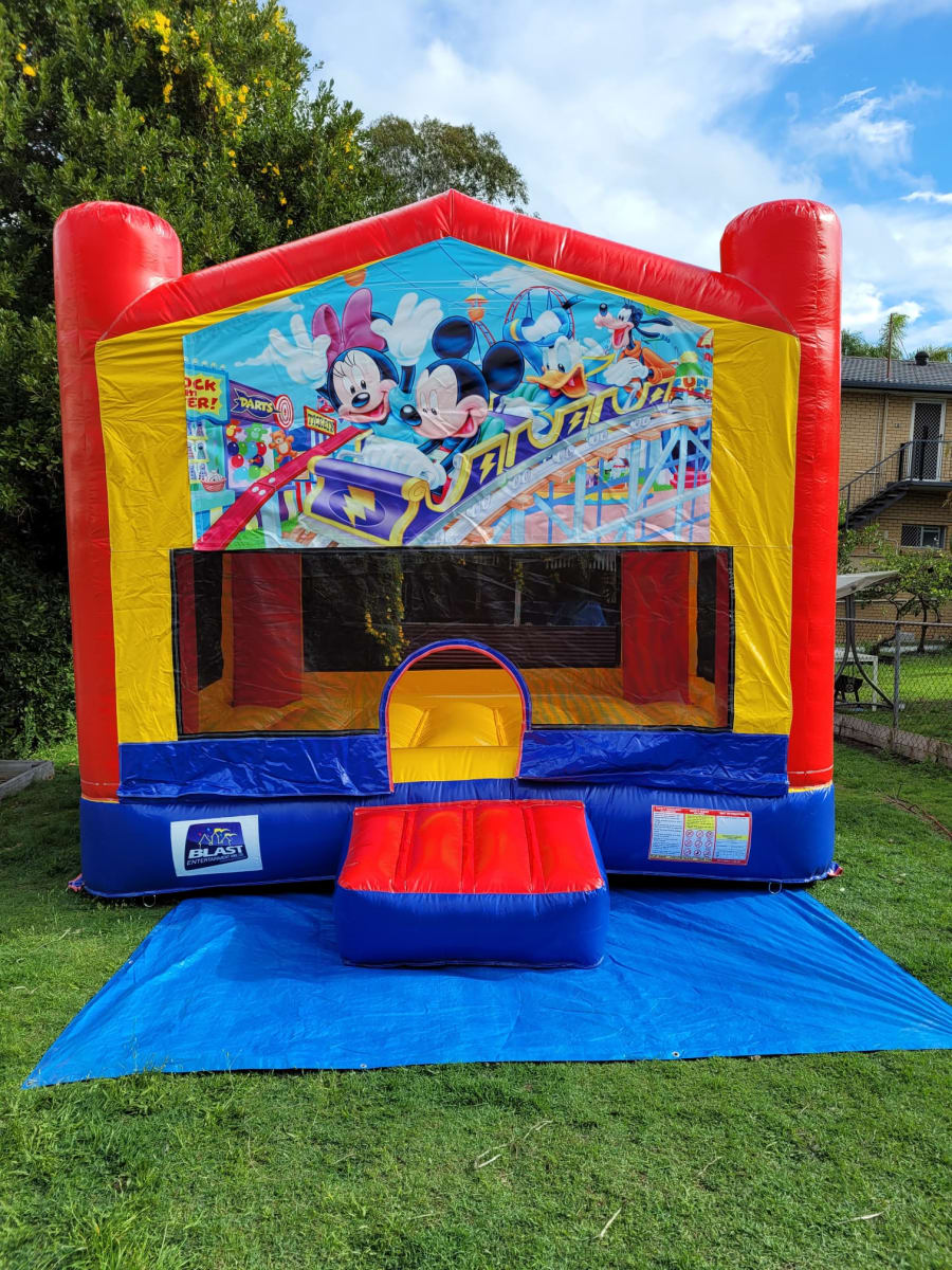 Keep your ears out and eyes open! Have a little bit of Disneyland in your backyard and enter a world of fun with the Mickey and Minnie Mouse themed jumping castle.