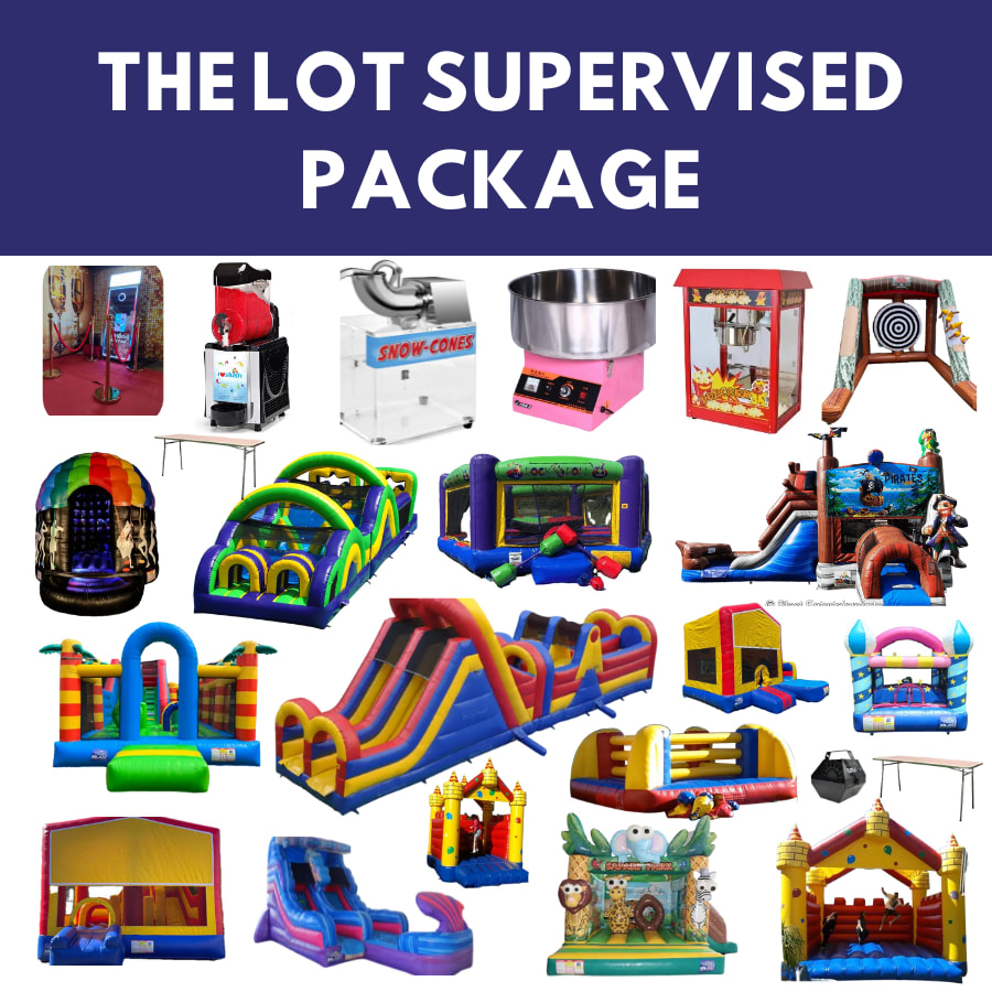Need a complete entertainment solution and serious value? The Lot Supervised Package lets you save up to $394 or more by bundling premium Jumping Castle Hire and event equipment hire into one massive, all-inclusive package across Caboolture, Brisbane and Ipswich.